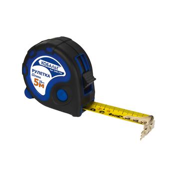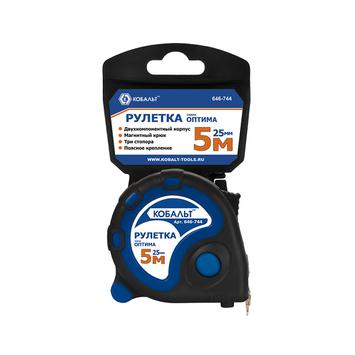 Рулетка КОБАЛЬТ Оптима 5м x 25мм, двухкомп. корпус, тройной стопор, магн.крючок, мат. покрытие ленты, толщина ленты 0.11 мм