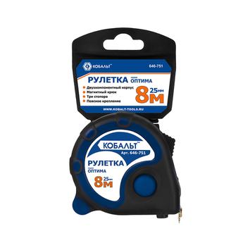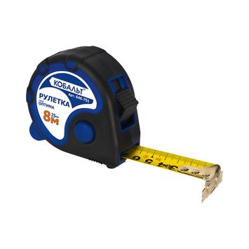 Рулетка КОБАЛЬТ Оптима 8м x 25мм, двухкомп. корпус, тройной стопор, магн.крючок, мат.покрытие ленты, толщина ленты 0.11 мм