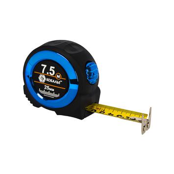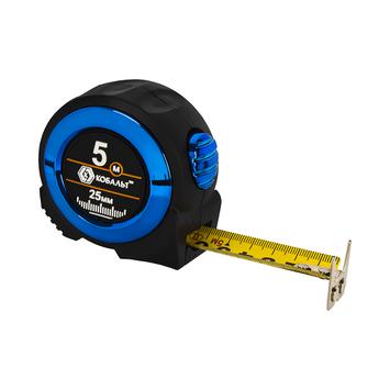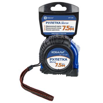 Рулетка КОБАЛЬТ Вектор 7,5м x 25мм обрезиненный корп., мех.стопор, белое мат. покрытие ленты, толщина ленты 0.11 мм