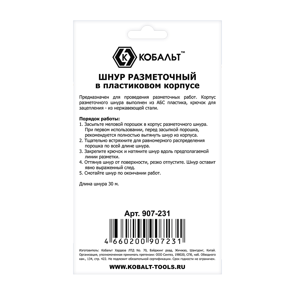 | тип разметочного инструмента: | шнур разметочный |