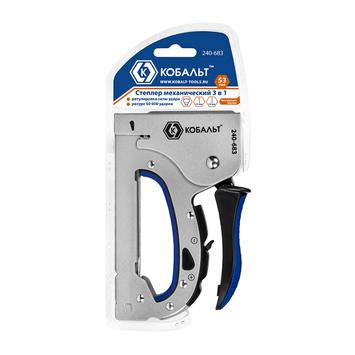 Степлер механический КОБАЛЬТ 3 в 1, скобы 6-14мм, тип 53, шпильки до 14мм, гвозди до 14мм, цель/мет.корп.,рег.удара,прорез.рук-ка