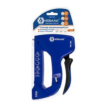 Степлер механический КОБАЛЬТ 6 в 1, скобы 6-14мм, тип 53/140/13, скобы для кабеля 10-14мм, шпильки до 14мм, гвозди 12-16мм, рег.уд.