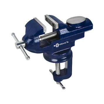 Тиски слесарные КОБАЛЬТ 246-029, поворотные , с шириной губок 50 мм, массой 2,2 кг, предназначены для надежной фиксации деталей для дальнейшей сборки или обработки режущим, шлифовальным или легким ударным инструментом. Изготовлены из ковкого чугуна с затягивающим винтом из углеродистой конструкционной стали. Тиски имеют прямоугольную наковальню размером 45*30 мм, для правки заготовок легким ударным инструментом. Поворотный механизм позволяет установить тиски в наиболее удобное для обработки детали положение. На тисках предусмотрены съемные губки для возможности замены в случае их износа. Идеальны для домашнего применения, моделизма, ювелирных и других мелких слесарных работ. Ширина захвата (рабочий ход) основного зажима 60 мм.