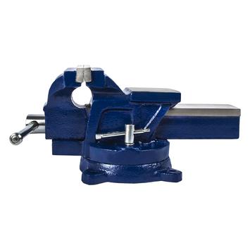 Тиски слесарные поворотные с шириной губок 100мм, 7кг КОБАЛЬТ 245-978 предназначены для надежной фиксации деталей для дальнейшей сборки или обработки режущим, шлифовальным или легким ударным инструментом. Изготовлены из ковкого чугуна с затягивающим винтом из углеродистой конструкционной стали. Тиски имеют прямоугольную наковальню 65х60мм для правки заготовок легким ударным инструментом: молотком или киянкой. Поворотный механизм позволяет установить тиски в наиболее удобное для обработки детали положение в горизонтальной плоскости. На тисках предусмотрены съемные губки для возможности замены в случае их износа. Крепление на верстаке с помощью 3-х болтов или саморезов не менее 8 мм в диаметре. Ширина захвата 100мм, ширина губок 100мм, масса 7 кг.