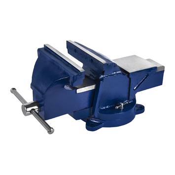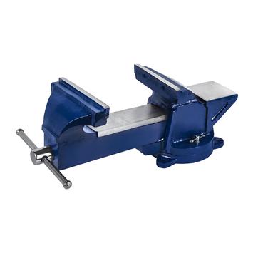 Тиски слесарные поворотные с шириной губок 200мм, 35кг КОБАЛЬТ 246-005 предназначены для надежной фиксации деталей для дальнейшей сборки или обработки режущим, шлифовальным или легким ударным инструментом. Изготовлены из ковкого чугуна с затягивающим винтом из углеродистой конструкционной стали. Тиски имеют прямоугольную наковальню 145х140мм для правки заготовок легким ударным инструментом: молотком или киянкой. Поворотный механизм позволяет установить тиски в наиболее удобное для обработки детали положение в горизонтальной плоскости. На тисках предусмотрены съемные губки для возможности замены в случае их износа. Крепление на верстаке с помощью 3-х болтов или саморезов не менее 8 мм в диаметре. Ширина захвата 230мм, ширина губок 200мм, масса 17 кг.
