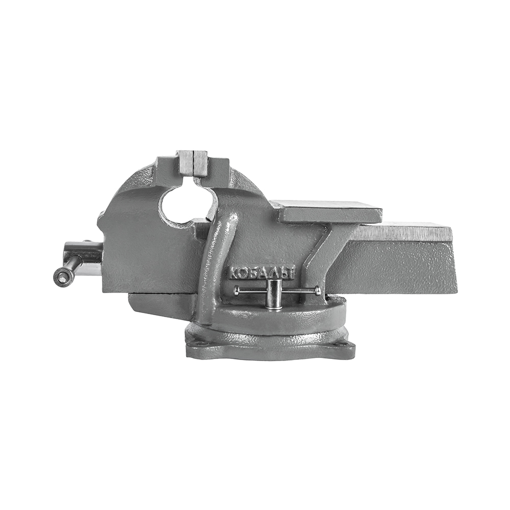 Тиски слесарные КОБАЛЬТ чугунные, ширина губок 125 мм, захват 130 мм, 13.5 кг, с наковальней, поворотные, коробка