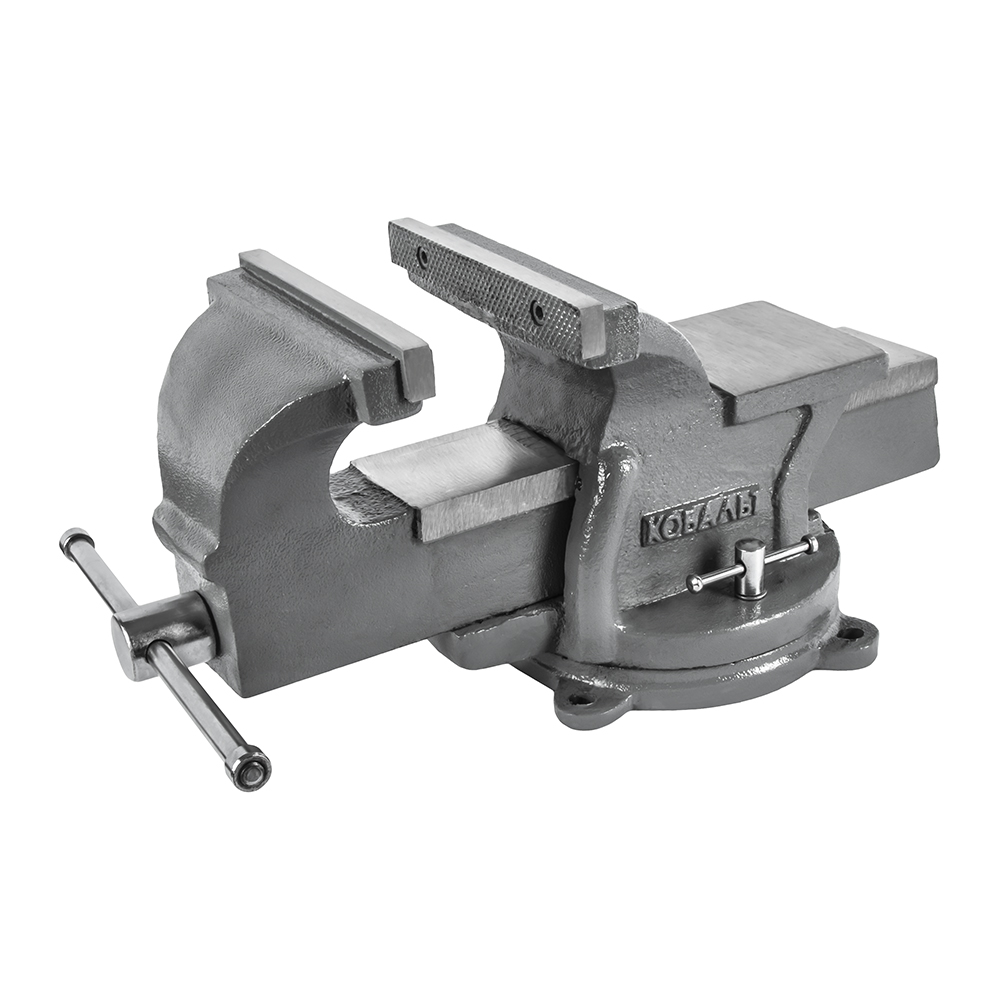 Тиски слесарные КОБАЛЬТ стальные, ширина губок 100 мм, захват 100 мм, 7.1 кг, с наковальней, поворотные, коробка