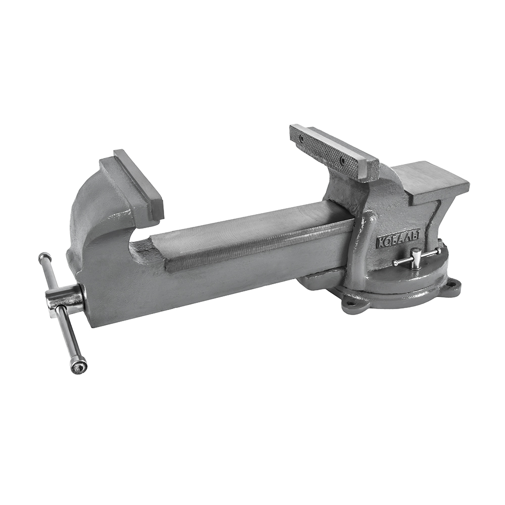 Тиски слесарные КОБАЛЬТ стальные, ширина губок 150 мм, захват 150 мм, 15.1 кг, с наковальней, поворотная, коробка