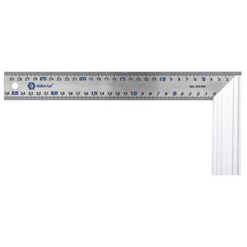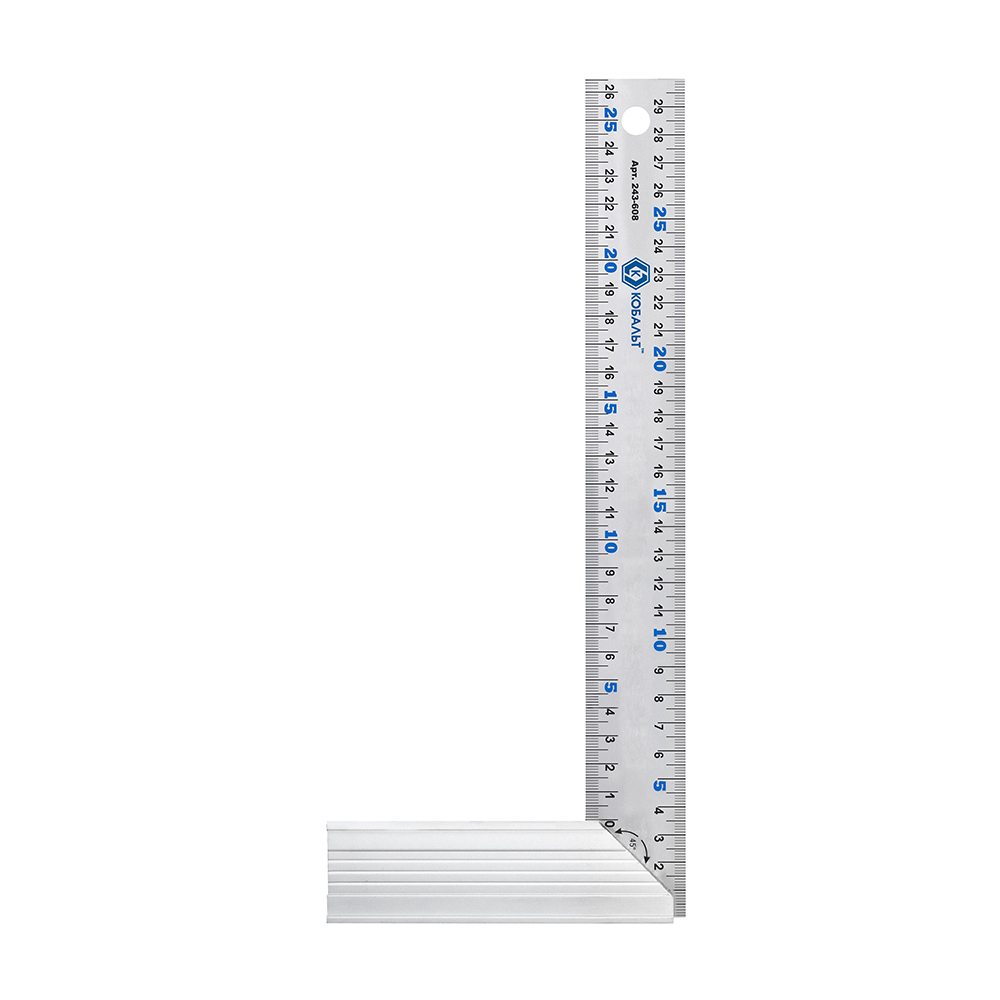 Угольник столярный 300 мм КОБАЛЬТ 243-608 предназначен для проведения линейных измерений, контроля прямого угла сопрягаемых поверхностей, а также для разметки деталей из дерева, ДСП, а также пластика, металла, стекла, плитки и других материалов. Применяется при производстве мебельных, столярных, монтажных работ. Корпус выполнен из нержавеющей стали. Основание алюминиевое. Разметка нанесёна с двух сторон полотна методом травления. Длина 300 мм, цена деления 1мм.