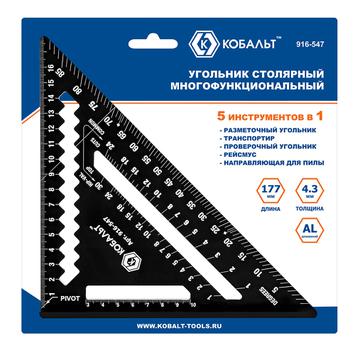 Угольник КОБАЛЬТ столярный многофункциональный, 177 мм, толщина 4,3 мм, алюминиевый, анодированное покр-е, метрическая шкала