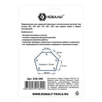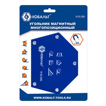 Угольник магнитный КОБАЛЬТ 145 х 110 мм, на 6 углов: 30, 45, 60, 75, 90, 135 градусов, магнит до 34 кг., блистер