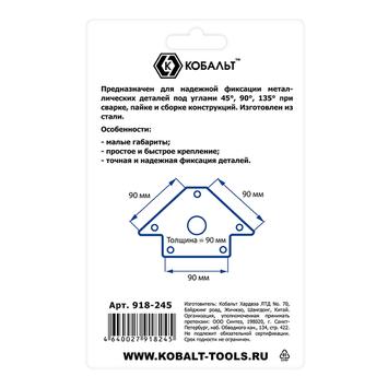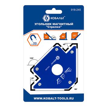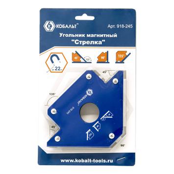 Угольник магнитный КОБАЛЬТ "Стрелка", 100 мм, на 3 угла: 45, 90, 135 градусов, магнит до 22 кг., блистер