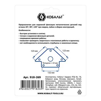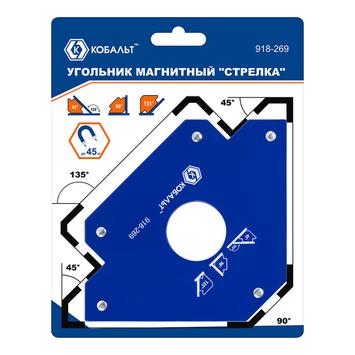 Угольник магнитный КОБАЛЬТ "Стрелка", 140 мм, на 3 угла: 45, 90, 135 градусов, магнит до 45 кг., блистер