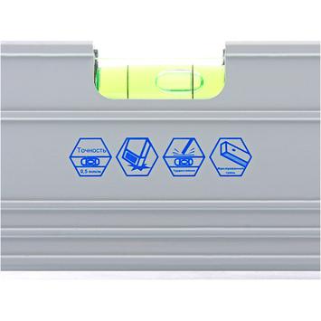 Уровень строительный КОБАЛЬТ Экстра 600 мм 243-219 предназначен для планирования горизонтальных, вертикальных поверхностей и поверхностей расположенных под углом 45 градусов к горизонту. Изготовлен из жесткого алюминиевого прямоугольного профиля с толщиной стенки 1,2мм сечением 23x59 мм с тремя ребрами жесткости. Профиль имеет фрезерованные грани для удобства позиционирования на округлых и скользких поверхностях. Уровень имеет 3 глазка-ватерпаса: горизонтальный, вертикальный и расположенный под углом 45 градусов, точность 0,5 мм/м. Ватерпасы установлены в профиль в положении, при котором хорошо обеспечивается защита от ударов. Пластиковые заглушки на торцах уровня для предотвращения повреждения профиля. Специальная окрашенная спиртосодержащая незамерзающая жидкость, стойкая к воздействию ультрафиолета, обеспечивает хорошую стабильность и читаемость результатов. Длина общая 600 мм.