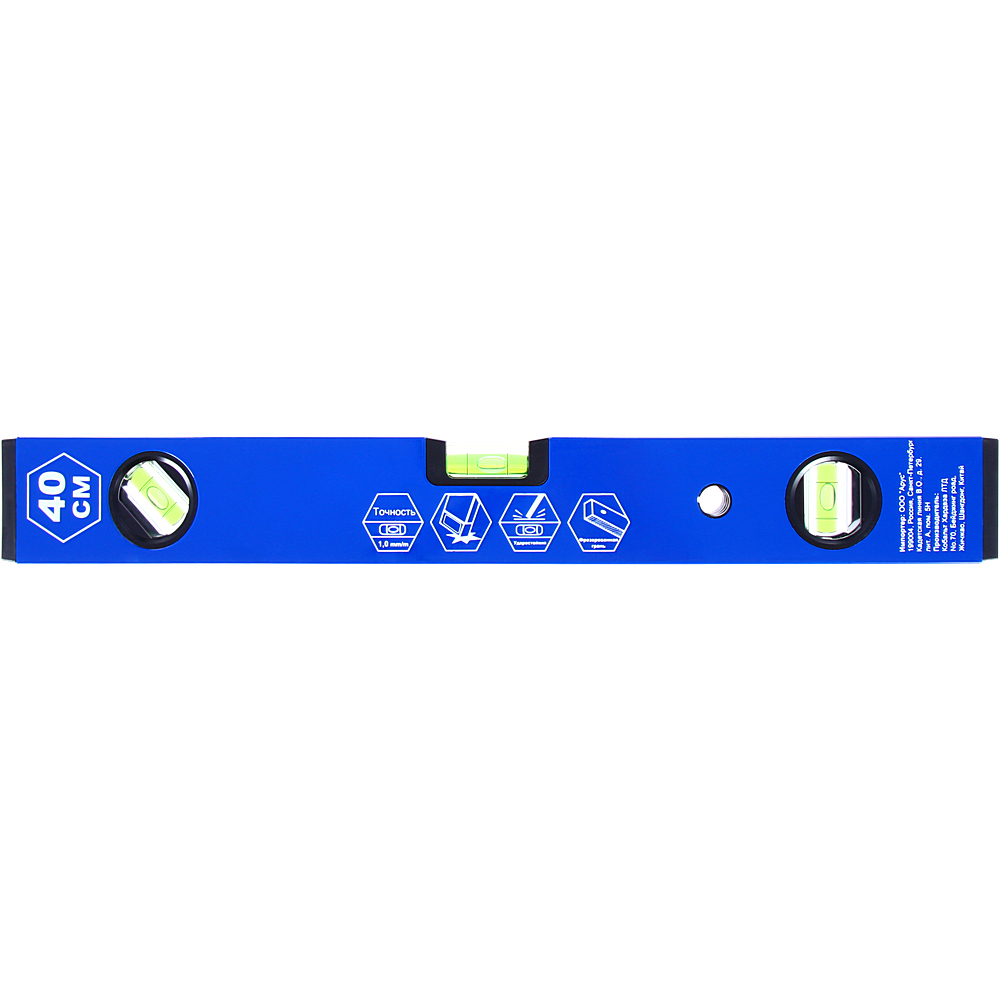 Уровень строительный КОБАЛЬТ Комфорт, 400 мм, профиль 20 x 49 мм, 3 глазка, точность 1 мм/м