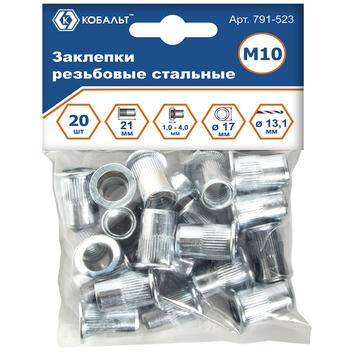 Заклепки резьбовые КОБАЛЬТ стальные M10 х 21 мм, 20 шт., пакет с подвесом