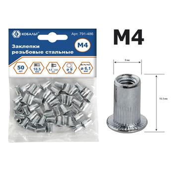 Заклепки резьбовые КОБАЛЬТ стальные M4 х 10.5 мм, 50 шт., пакет с подвесом