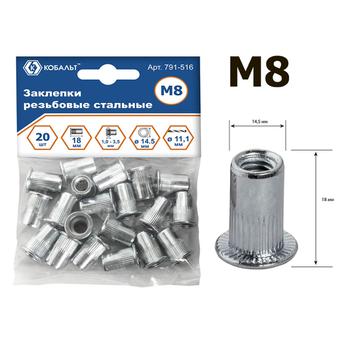 Заклепки резьбовые КОБАЛЬТ стальные M8 х 18.5 мм, 20 шт., пакет с подвесом