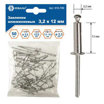 Заклепки вытяжные КОБАЛЬТ алюминиевые 3.2 х 12 мм, 50 шт., пакет с подвесом