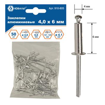 Заклепки вытяжные КОБАЛЬТ алюминиевые 4.0 х 6 мм, 50 шт., пакет с подвесом