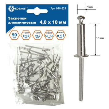 Заклепки вытяжные КОБАЛЬТ алюминиевые 4.0 х 10 мм, 50 шт., пакет с подвесом