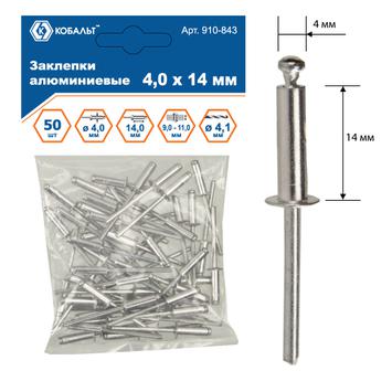 Заклепки вытяжные КОБАЛЬТ алюминиевые 4.0 х 14 мм, 50 шт., пакет с подвесом
