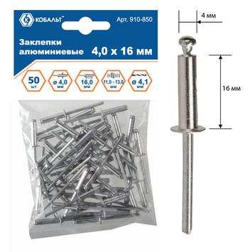Заклепки вытяжные КОБАЛЬТ алюминиевые 4.0 х 16 мм, 50 шт., пакет с подвесом
