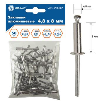 Заклепки вытяжные КОБАЛЬТ алюминиевые 4.8 х 8 мм, 50 шт., пакет с подвесом
