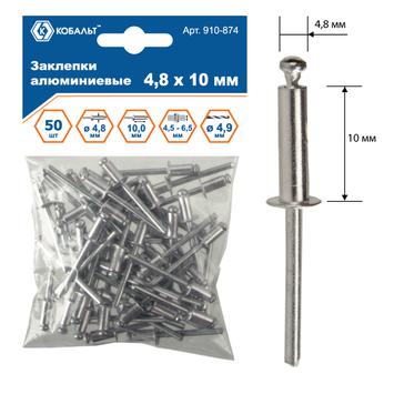 Заклепки вытяжные КОБАЛЬТ алюминиевые 4.8 х 10 мм, 50 шт., пакет с подвесом