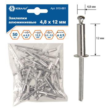 Заклепки вытяжные КОБАЛЬТ алюминиевые 4.8 х 12 мм, 50 шт., пакет с подвесом