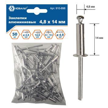 Заклепки вытяжные КОБАЛЬТ алюминиевые 4.8 х 14 мм, 50 шт., пакет с подвесом