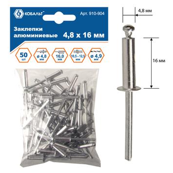 Заклепки вытяжные КОБАЛЬТ алюминиевые 4.8 х 16 мм, 50 шт., пакет с подвесом