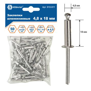 Заклепки вытяжные КОБАЛЬТ алюминиевые 4.8 х 18 мм, 50 шт., пакет с подвесом