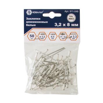 Заклепки вытяжные КОБАЛЬТ алюминиевые 3.2 х 8 мм, белые, RAL 9003, 50 шт., пакет с подвесом