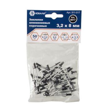 Заклепки вытяжные КОБАЛЬТ алюминиевые 3.2 х 8 мм, коричневые, RAL 8017, 50 шт., пакет с подвесом