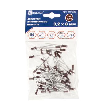 Заклепки вытяжные КОБАЛЬТ алюминиевые, 3,2 х 8 мм, красные RAL 3005