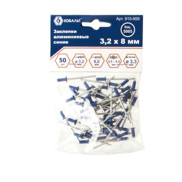 Заклепки вытяжные КОБАЛЬТ алюминиевые, 3,2 х 8 мм, синие RAL 5005