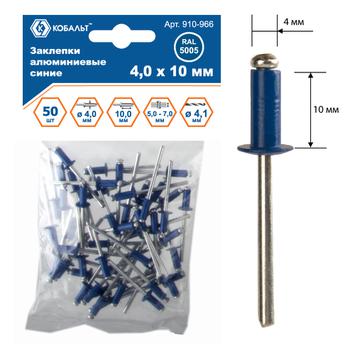 Заклепки вытяжные КОБАЛЬТ алюминиевые, 4,0 х 10 мм, синие RAL 5005