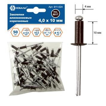 Заклепки вытяжные КОБАЛЬТ алюминиевые 4.0 х 10 мм, коричневые, RAL 8017, 50 шт., пакет с подвесом