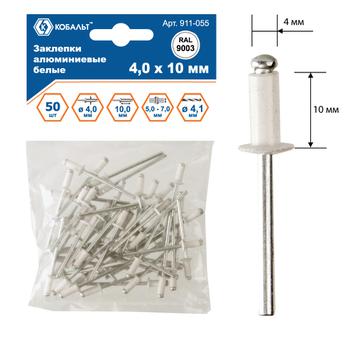 Заклепки вытяжные КОБАЛЬТ алюминиевые 4.0 х 10 мм, белые, RAL 9003, 50 шт., пакет с подвесом