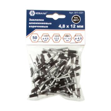 Заклепки вытяжные КОБАЛЬТ алюминиевые 4.8 х 12 мм, коричневые, RAL 8017, 50 шт., пакет с подвесом
