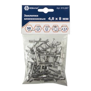 Заклепки вытяжные КОБАЛЬТ алюминиевые 4.8 х 8 мм, 50 шт., пакет с подвесом