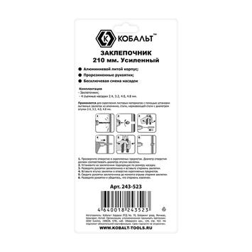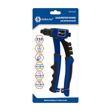 Заклепочник одноручный КОБАЛЬТ 210 мм, усиленный, заклепки 2.4-3.2-4.0-4.8 мм, блистер