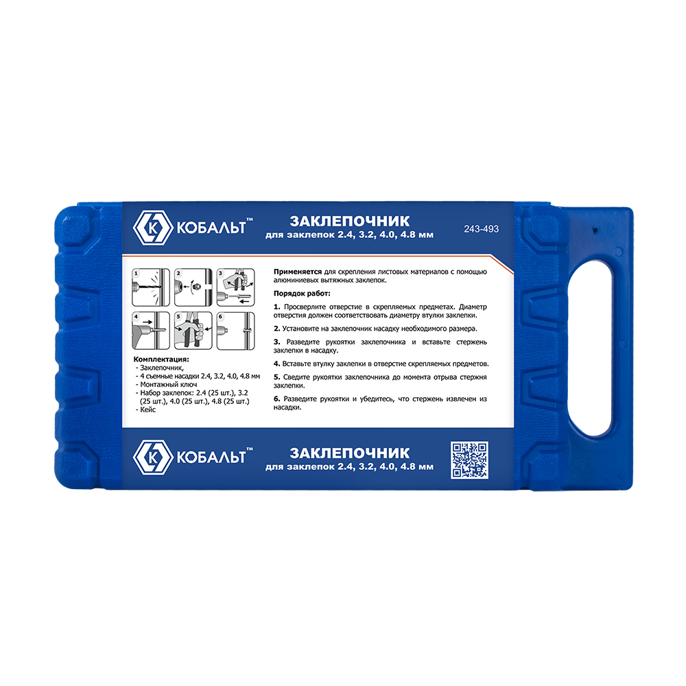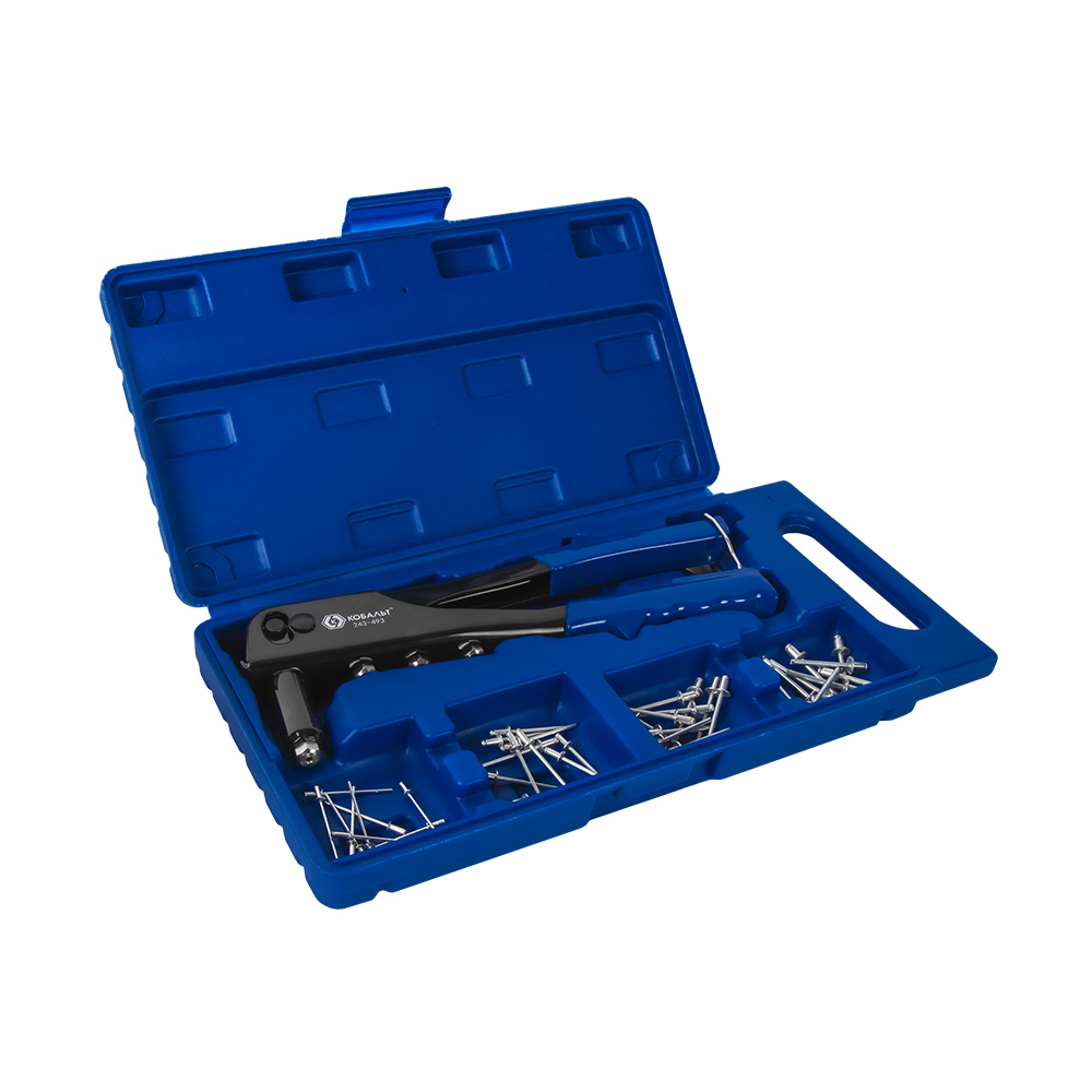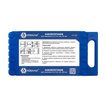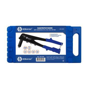 Заклепочник одноручный КОБАЛЬТ 260 мм, заклепки 2.4-3.2-4.0-4.8 мм, кейс
